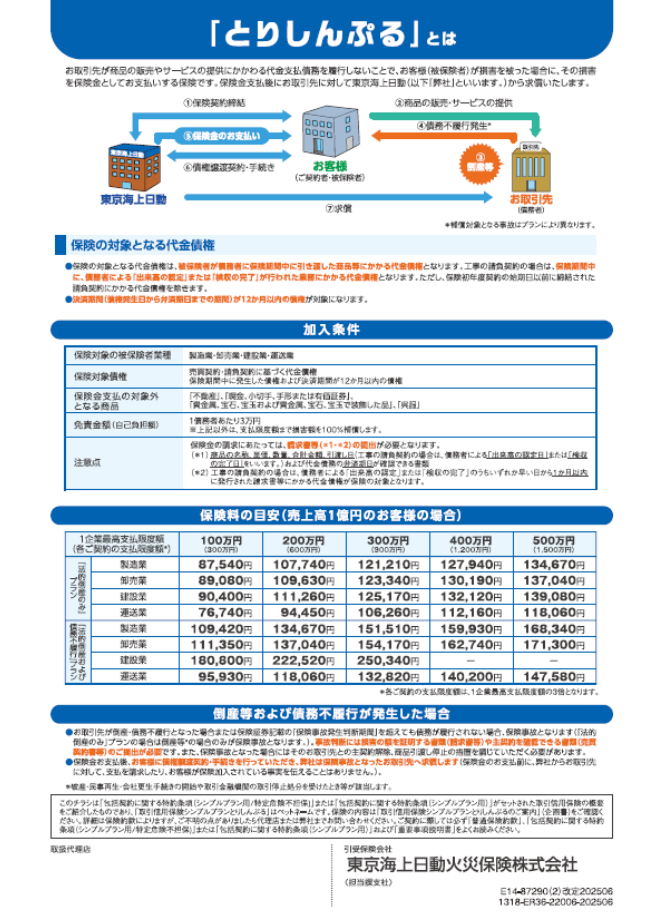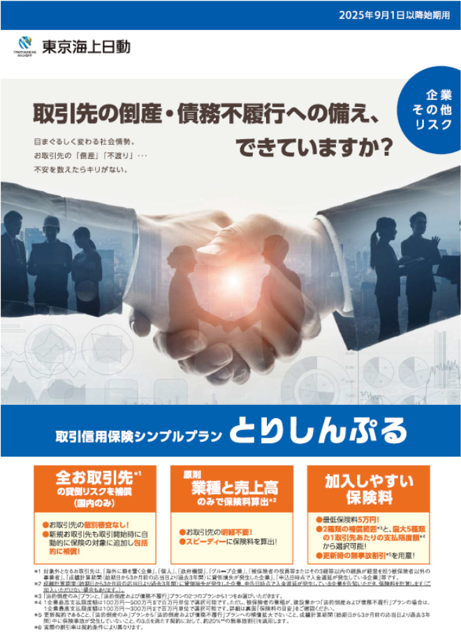 東京海上日動の取引信用保険シンプルプラン「とりしんぷる」です。